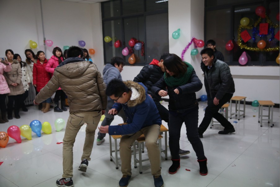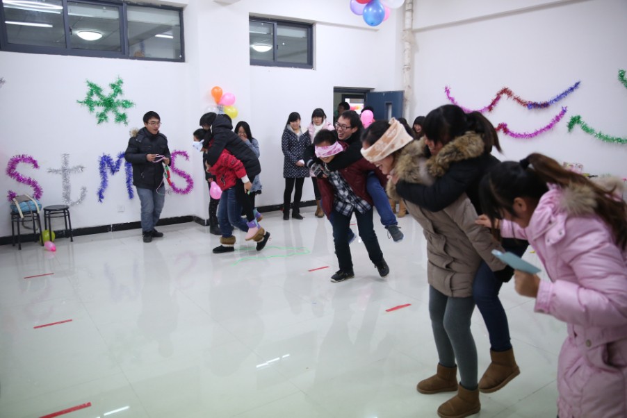 游园会以“狂欢圣诞,喜迎元旦”为主题,活动内容为“勇闯三关”、“蒙眼击鼓”、“穿越火线”、“猜猜我是谁”、“趣味争夺战”等趣味互动游戏。晚上五点三十分,游戏正式开始,比赛中趣味与挑战同在,充满激情与惊险的游戏,考验着我院学生的聪慧与默契。各项游戏大家都玩得热火朝天,你追我赶,好不热闹。一个个游戏看似简单,但做起了却不是那么容易,如“穿越火线”游戏队员的团结,“猜猜我是谁”需要相互配合。“猜猜我是谁”从动漫、动物、国内文娱明星等各个领域,一人描述,一人猜,让同学们充分发挥想象的空间,看到各种令人忍俊不禁的动作,大家都想忍不住冲上去过一把瘾。圣诞之夜,青春的气息在校园的每个角落都表现地淋漓尽致,每个人脸上都洋溢着青春的朝气。