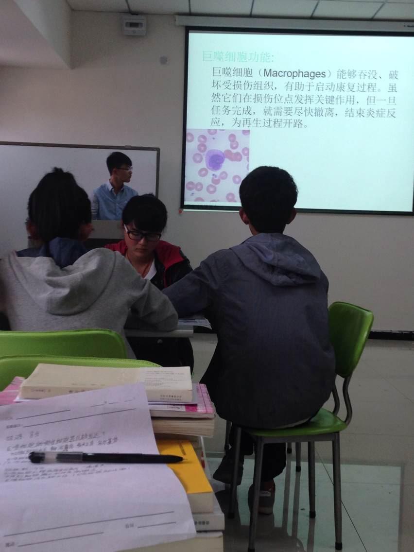 本次讨论课以学生发言讨论为主,教师点评总结为辅。首先由学生就“巨噬细胞的过去、现在和未来”这个主题查阅相关资料,就自己的理解和认识用多媒体的方式自发主动到讲台展示讲解给大家,之后教师与学生针对相关问题展开讨论。本次讨论课得到了我院领导的高度重视,杨保胜教授莅临现场鼓励学生积极大胆参与到讨论中。