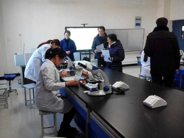 2015年圣诞节上午9点,第一届青年教师实验技能大赛决赛进行到形态2组,此次比赛由三位专家教授李进芬、杨晓、李万里担任比赛的评委,并有院领导李勇莉、苗莹莹出席参观。于基础楼病原生物学第七实验室进行。