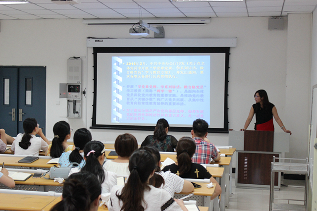 2016年623日上午,第一院系党支部在基础楼B403教室举行了党员干部学党章党规、学系列讲话、做合格党员学习教育动员大会,安排部署两学一做相关工作,统一思想,明确任务,落实责任。会议由基础医学院副院长苗莹莹同志主持,第一院系党支部书记王俊萍全体党员参加会议。
