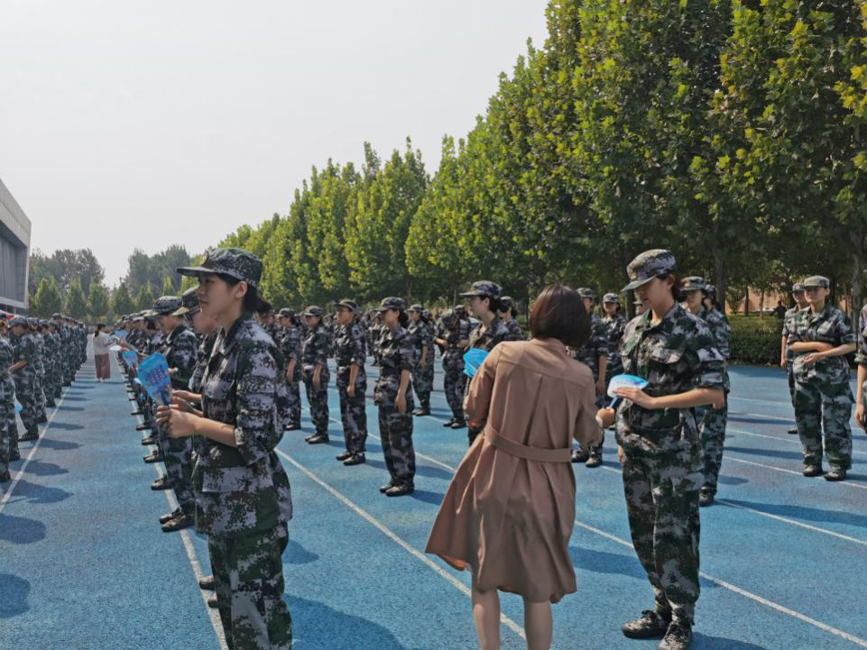 9月24日上午,基础医学院的老师们在基础医学院副院长苗莹莹带领下,来到体育场,慰问正在烈日下进行军训的2020级新同学,为他们送去一把把“清凉小帮手”——扇子。