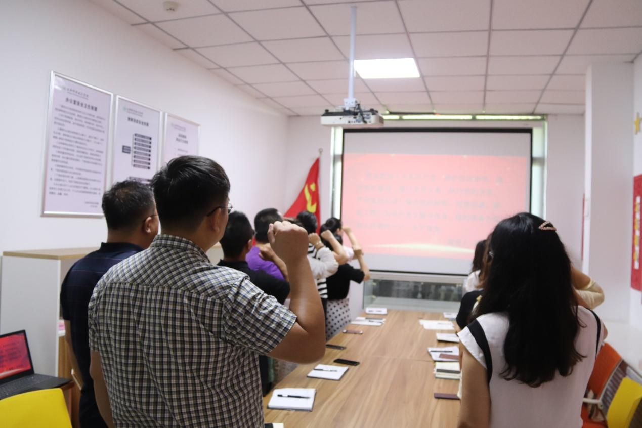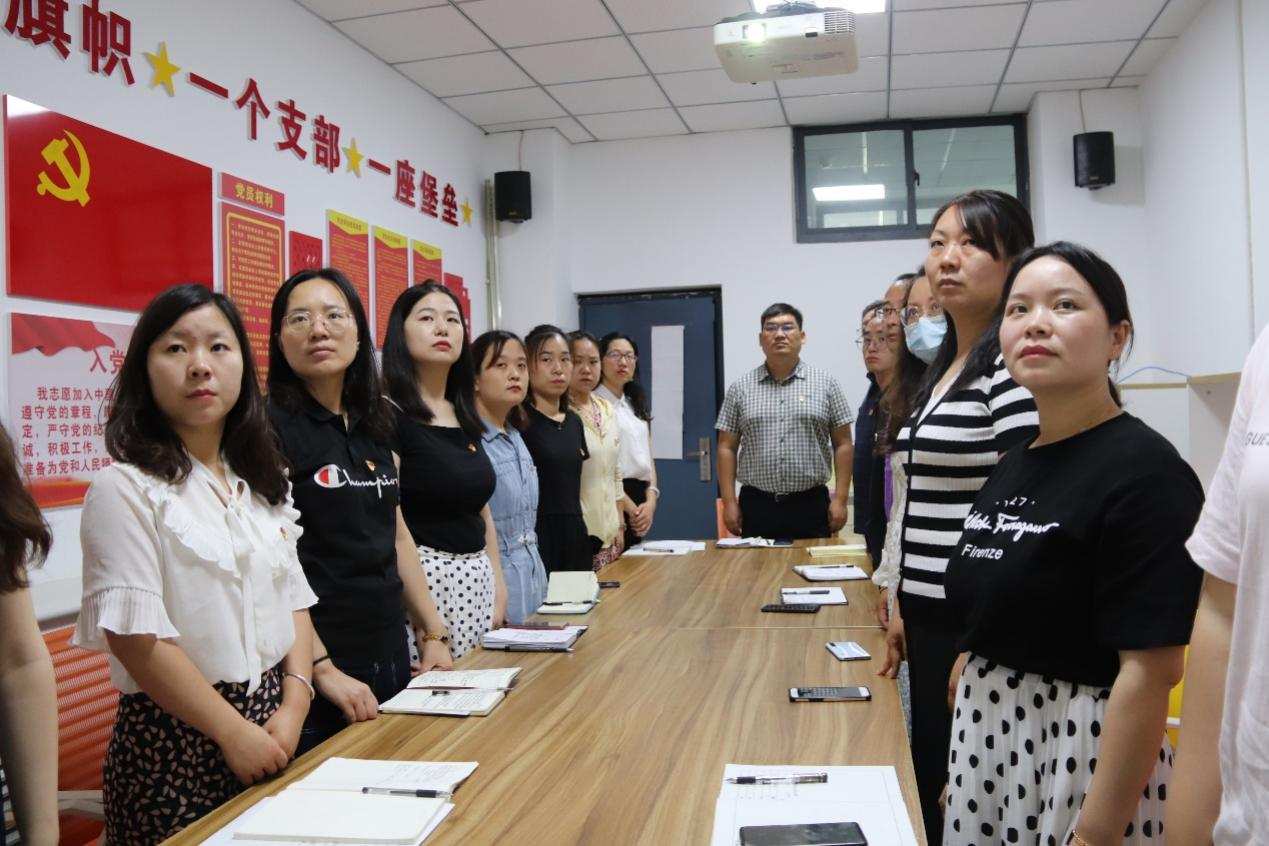 由党支部宣传委员买晨迪同志领誓,组织全体参会老师面向党旗,举起右手,庄严宣誓:“我志愿加入中国共产党,拥护党的纲领,遵守党的章程,履行党员义务,执行党的决定,严守党的纪律,保守党的秘密……”铿锵有力的声音,一字一句,神圣而豪迈;铮铮誓言,体现了党员同志们对中国共产党的无限忠诚。