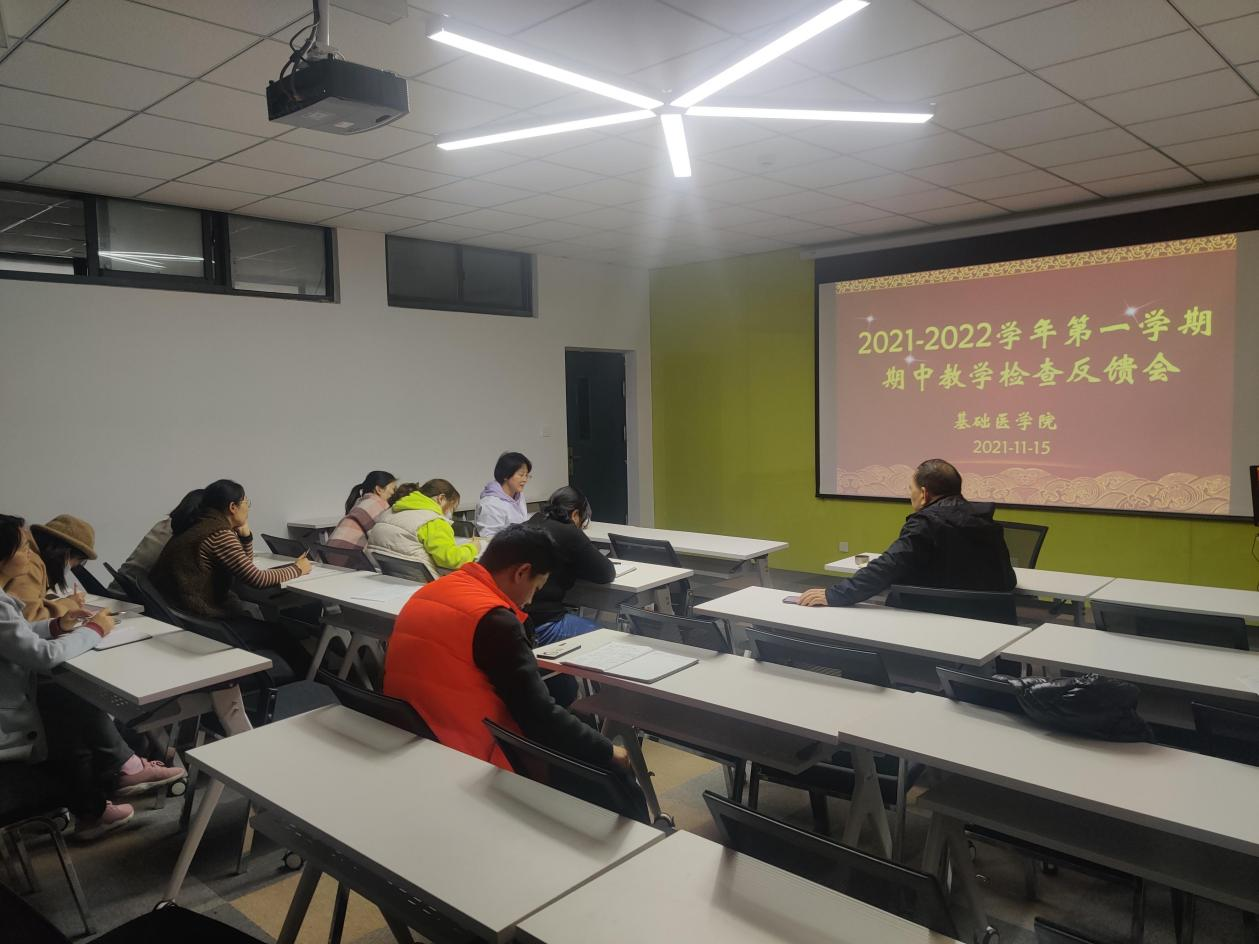 11月15日下午,基础医学院在基础楼A304开展2021-2022学年第一学期期中教学检查反馈会。会议由基础医学院杨保胜院长主持,李勇莉副院长、各教研室主任、副主任参加会议。