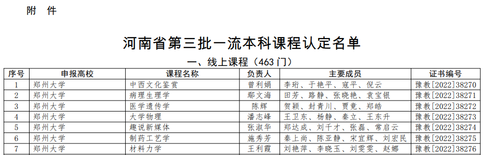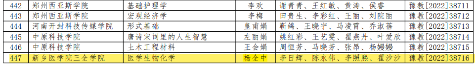 9月30日,河南省教育厅公布了第三批河南省一流本科课程认定名单,基础医学院杨全中老师主持的河南省精品在线开放课程《医学生物化学》课程获批河南省线上一流本科课程,标志着我院课程建设又上新台阶。截至目前,我院共主持获批省级一流课程4门,其中线上一流课程3门,线上线下混合式一流课程1门。