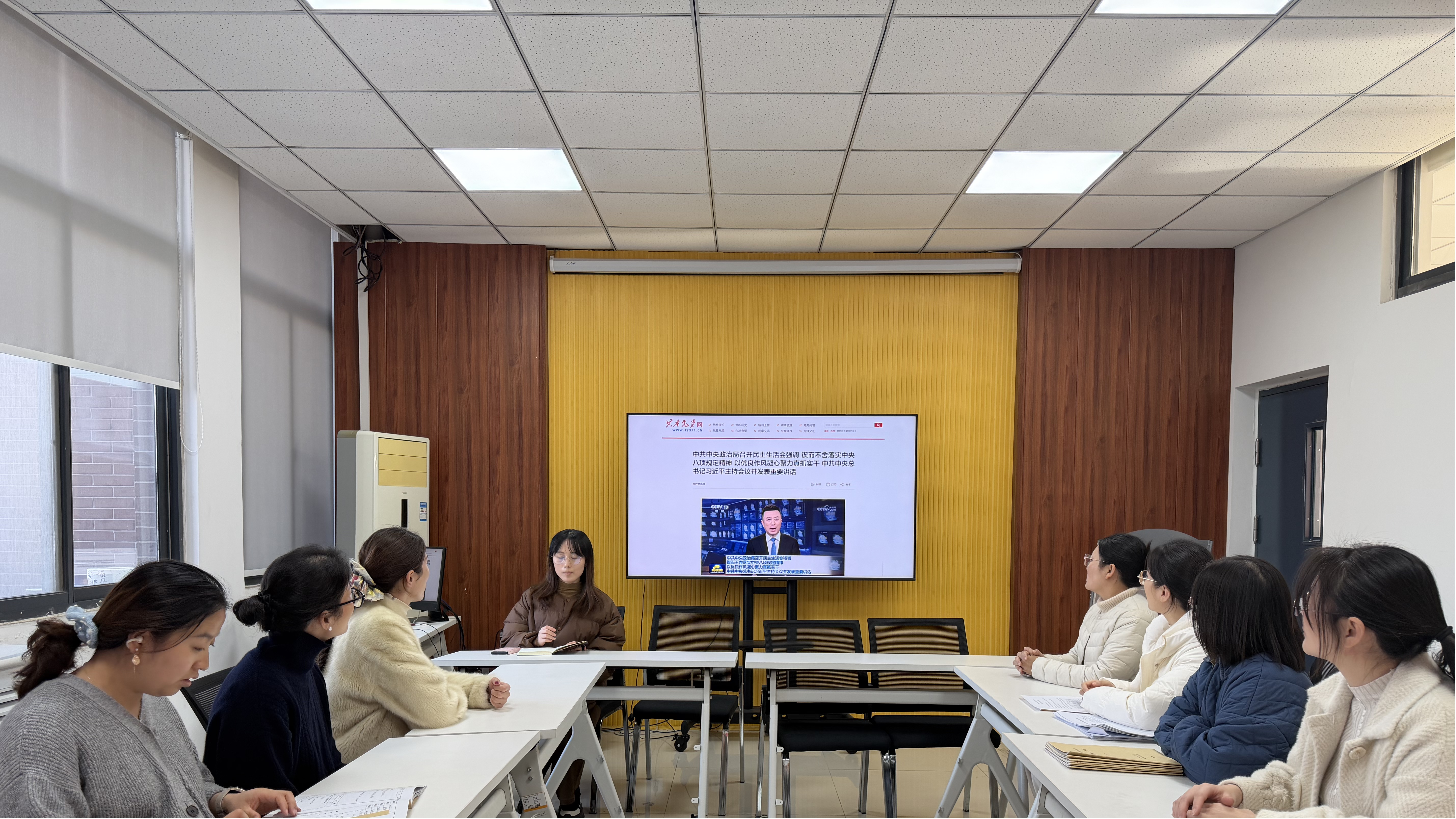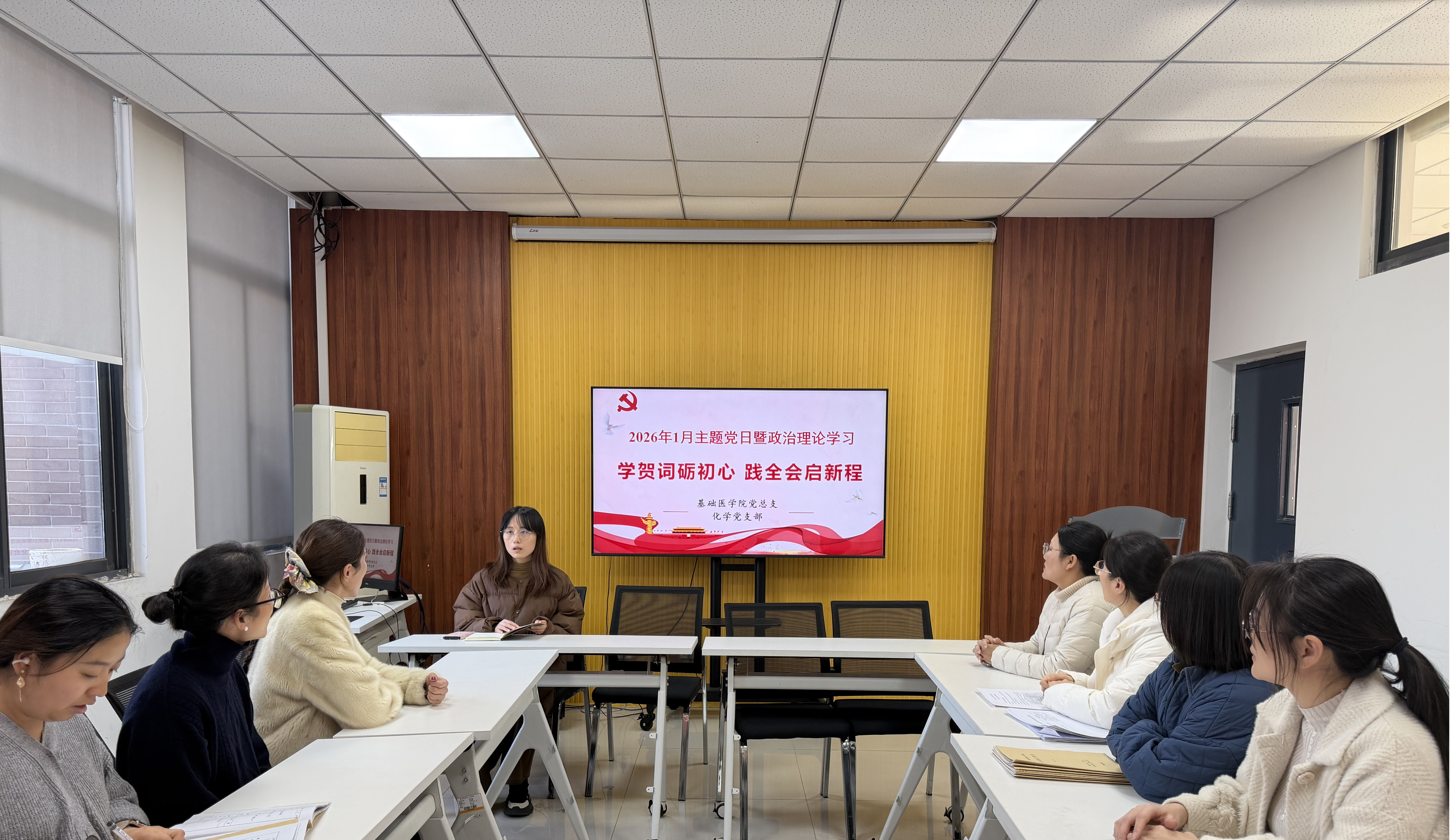 为深入学习贯彻习近平总书记系列重要讲话精神,全面落实党的二十届四中全会部署要求,推动政治理论学习走深走实,化学党支部于1月15日在励学楼A315召开一月份主题党日活动暨政治理论学习会。本次会议以“学贺词砺初心 践全会启新程”为主题,引导教师党员在理论学习中筑牢育人根基,在使命担当中彰显师者本色,为 “十五五” 时期高等教育高质量发展凝聚奋进力量。本次会议由党支部书记李静同志主持,支部全体党员教师参加。