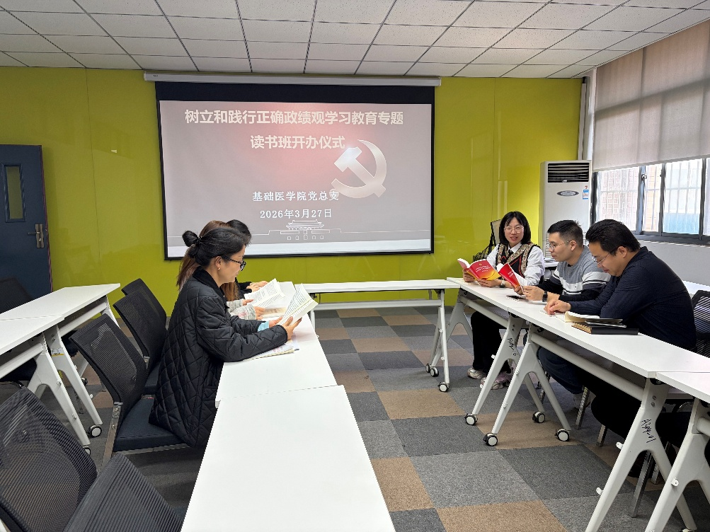 2026年3月27日下午,基础医学院党总支在谨学楼A304会议室召开树立和践行正确政绩观学习教育专题读书班安排部署会议,并举行开班仪式,学院党总支成员参加。学院党总支书记苗莹莹主持会议并作动员部署讲话。