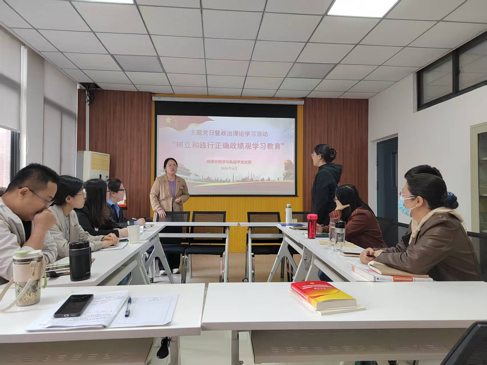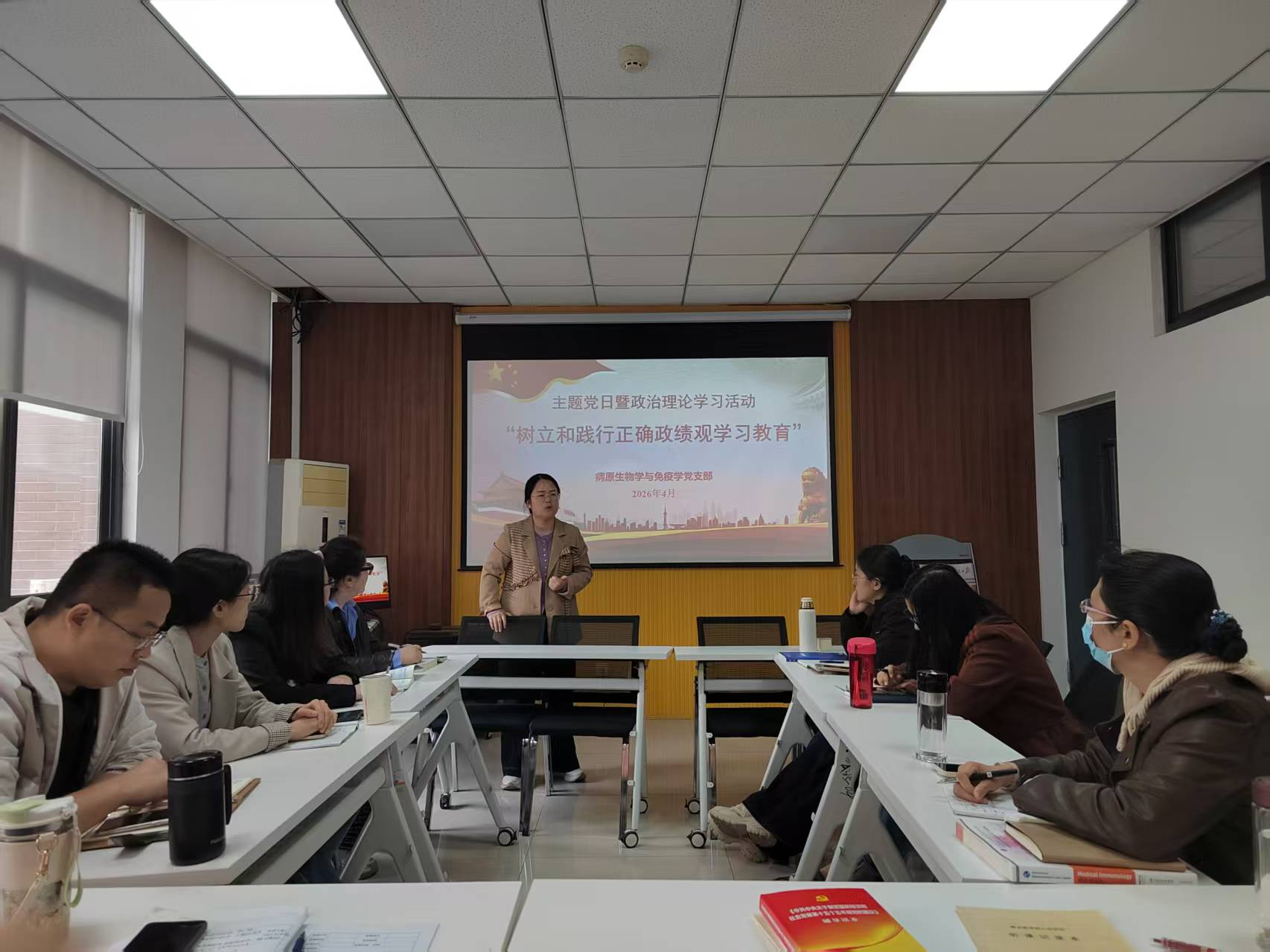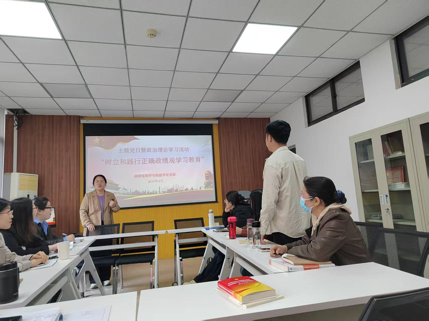 4月13日上午,基础医学院病原生物学与免疫学党支部在励学楼A315开展以“树立和践行正确政绩观学习教育”为主题的党日暨政治理论学习活动。支部全体党员参加会议,会议由党支部书记周艳琳主持。